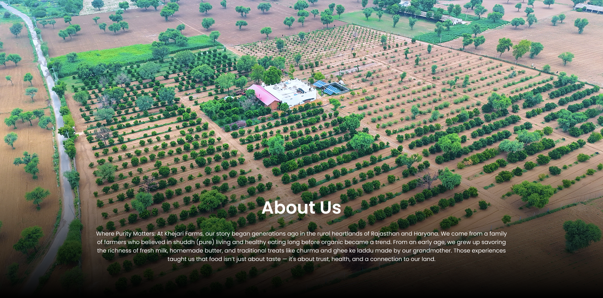Our roots run deep in Indian soil. For decades, our forefathers toiled under the sun in Rajasthan’s and Haryana’s villages, cultivating the land with natural methods and a reverence for the environment. This legacy of purity and health has been passed down like a precious heirloom. We learned to respect every grain, every drop of milk, and every ounce of ghee. It’s this heritage that forms the backbone of Khejari Farms. We carry forward the wisdom of our ancestors, ensuring that every product we offer is something we’d proudly serve in our own home, just like ghar ka khaana (home-cooked food)